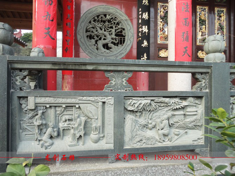 石欄桿欄板的浮雕是中國傳統(tǒng)建筑石欄桿上裝飾極強(qiáng)的表現(xiàn)形式,欄板的圖案千姿百態(tài),并不局限,內(nèi)容可以是花鳥草木,也可以是奇珍異獸,像寺廟欄桿也有一些宗教圖案在里面。