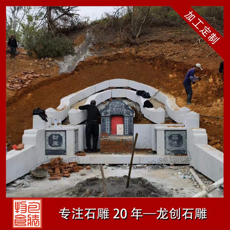 建造時,基礎工程先行。挖掘墓坑,深度依當地習俗與棺木尺寸而定,澆筑混凝土基礎,保證穩固。接著是墓碑安裝,常見的單碑、雙碑或家族碑,各有不同構造。單碑多為一塊整石,刻逝者姓名、生卒年月;雙碑用于夫妻合葬,設計對稱。家族碑規模較大,雕刻家族譜系等內容。碑身材質有花崗石、青石等,花崗石堅硬耐磨,青石古樸典雅。