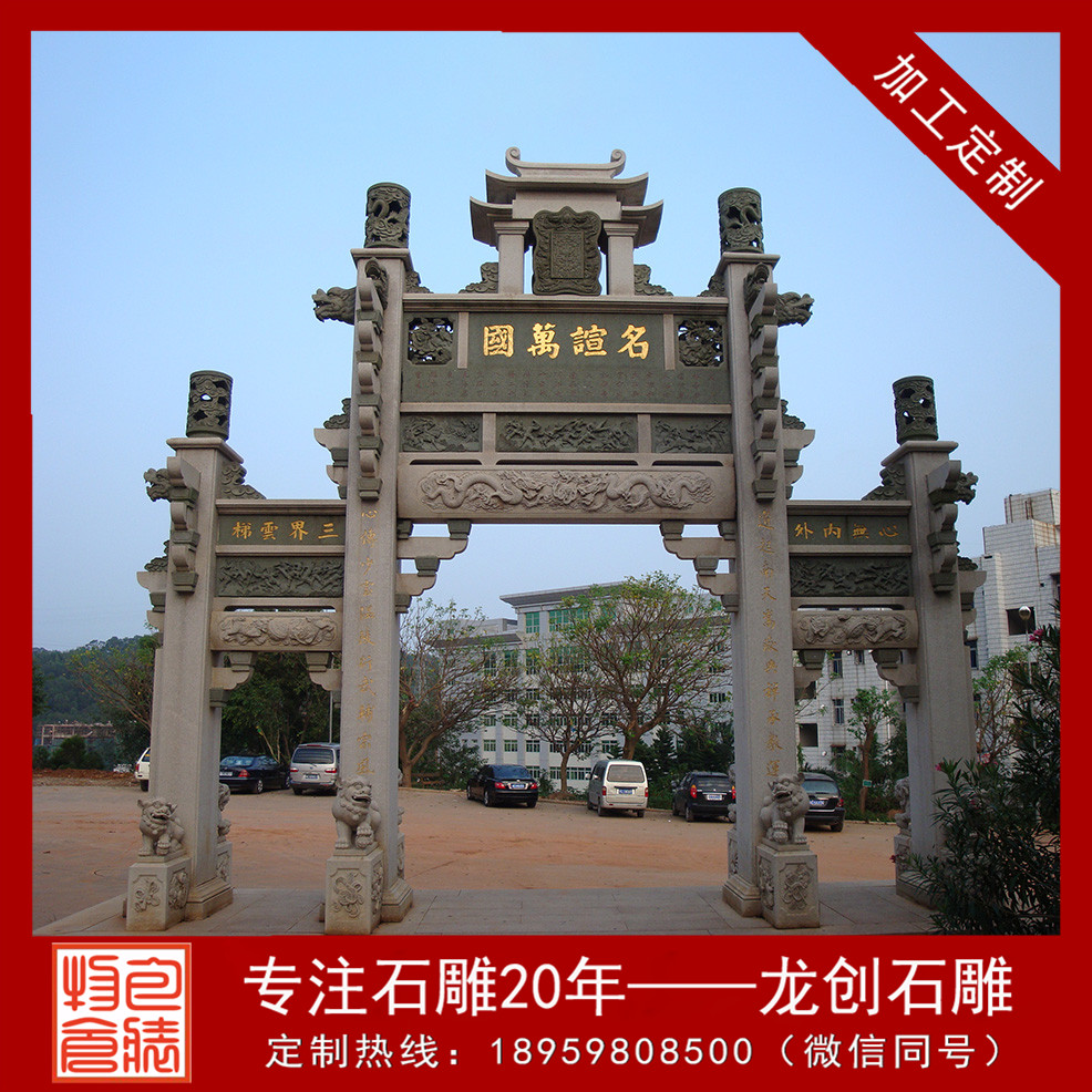 在建造中石牌坊是常常會用到,展現一個地區建造的風采和相貌,這對牌坊的款式選擇是比較考究的。石牌坊的造型和標準許多,比如典型的有單門牌坊、三門牌坊以及五門牌坊,從款式上看,有不出頭牌坊和沖天式牌坊,依據地域的運用不同,石牌坊的造型規劃也會有很大的不同,在選擇的時分可以先考慮到當地的文化和風土人情等,保證可以雕琢出更為精致的石牌坊著作。石牌坊制作,石牌坊廠家應認準龍創石雕。龍創石雕歡迎您的致電!