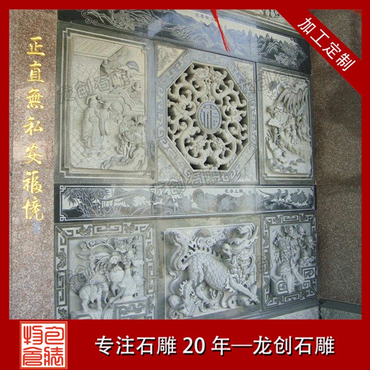 宗祠青石浮雕墻在現在的建筑中應用很廣泛,祠堂浮雕是雕刻的一種,雕刻者在一塊平板上將他要塑造的形象雕刻出來,使它脫離原來材料的平面。福建宗祠青石浮雕墻是雕塑與繪畫結合的產物,用壓縮的辦法來處理對象,靠透視等因素來表現三維空間,并只供一面或兩面觀看。福建宗祠青石浮雕墻按需定制,找惠安龍創石雕。