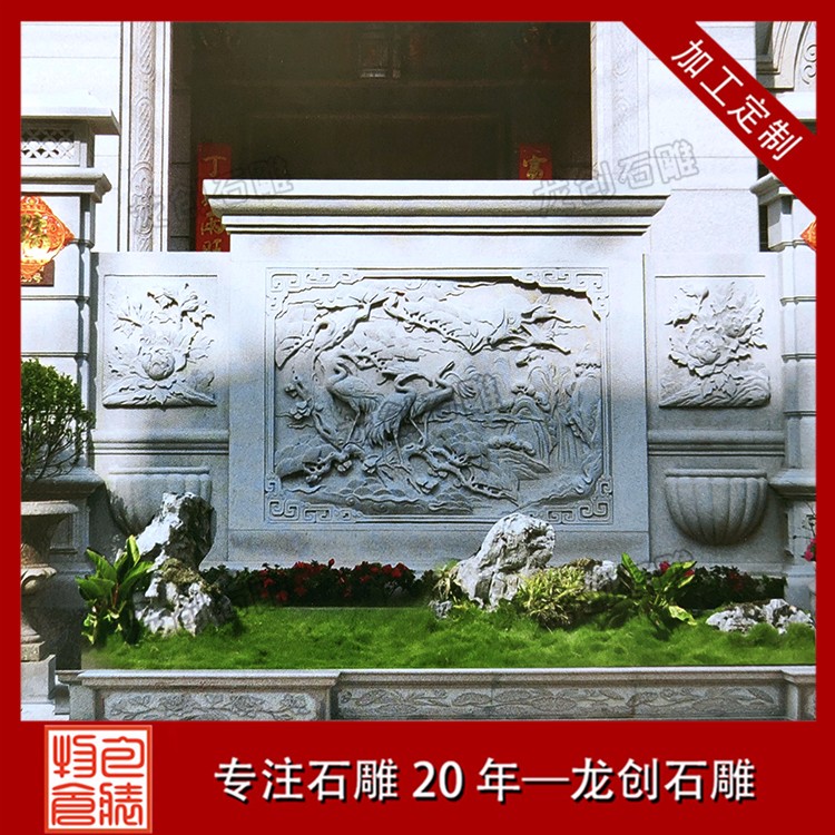 市場上浮雕石材背景墻加工較常見的天然石材浮雕有花崗巖浮雕和大理石浮雕?;◢弾r浮雕從才是來說是一種硬度比較高的石雕,因此它更具有耐磨性,保存也更久,所以它所應用到的場所室內室外都可以。而大理石的材質結構疏松,質地相對比較軟,所以它的耐磨性較差,如果應用在室外就比較容易受自然災害破壞。