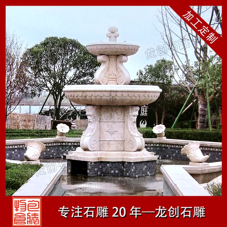 園林景觀石雕噴泉水缽雕塑是一種石材做成的盆狀或者罐狀的石雕作品,一般來說周邊有雕刻的紋路以及雕刻的附加飾品,然后組合成一個比較大的裝水,儲水的容器,并且部分石雕噴泉雕塑利用水壓把水從石雕噴泉雕塑的上端噴或者流出,形成一種特別的景象的石雕產(chǎn)品。石雕噴泉雕塑作為一種裝飾產(chǎn)品,所以一般適用于比較高檔的裝飾,不過隨著社會的發(fā)展,現(xiàn)在的水平高中低檔的價格可以滿足不同客戶的需求,從高端裝飾慢慢的成為了家居擺件,公司擺件,公園擺件,景區(qū)擺件等等。
