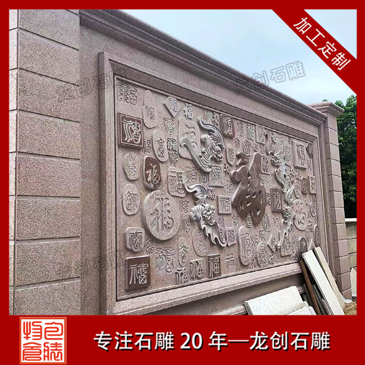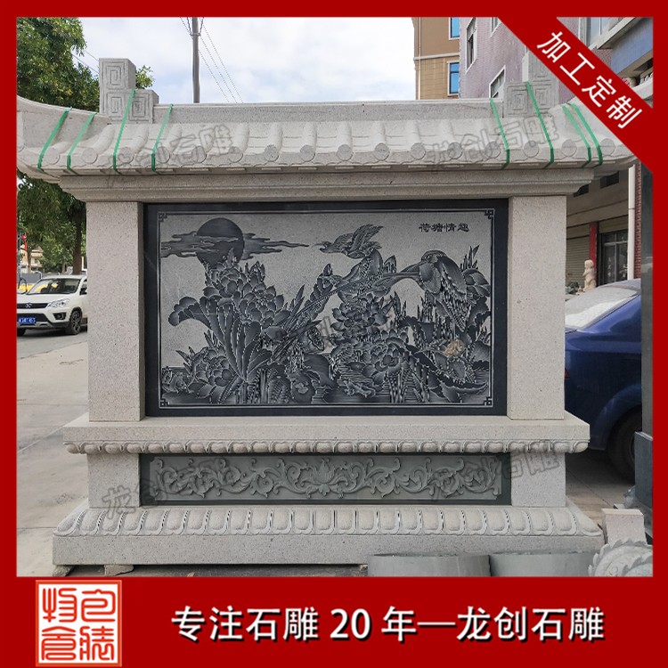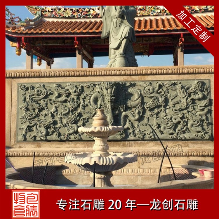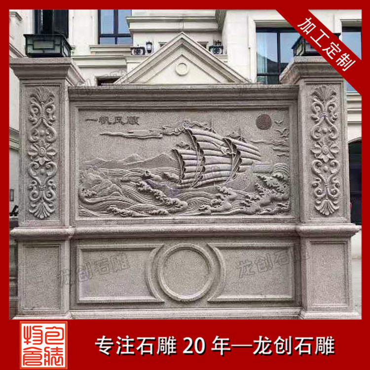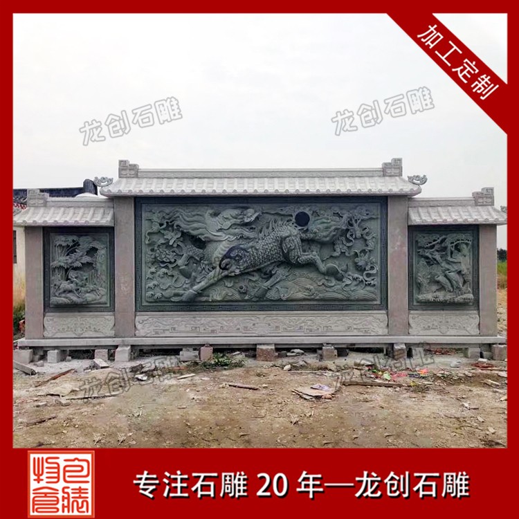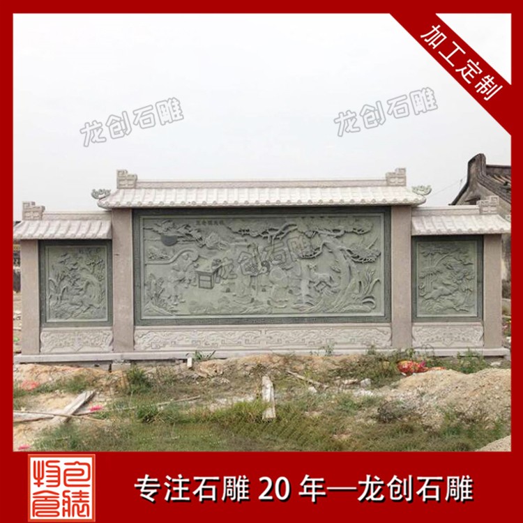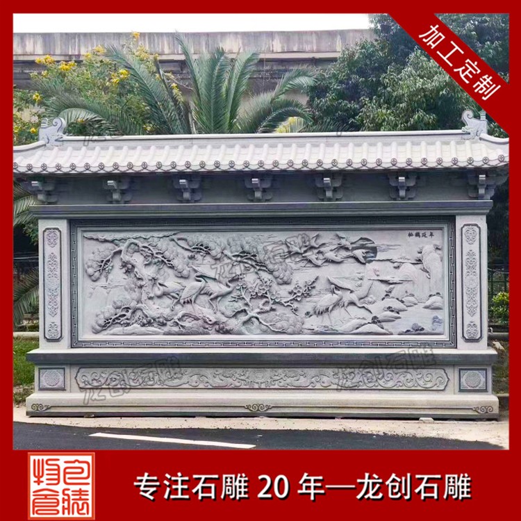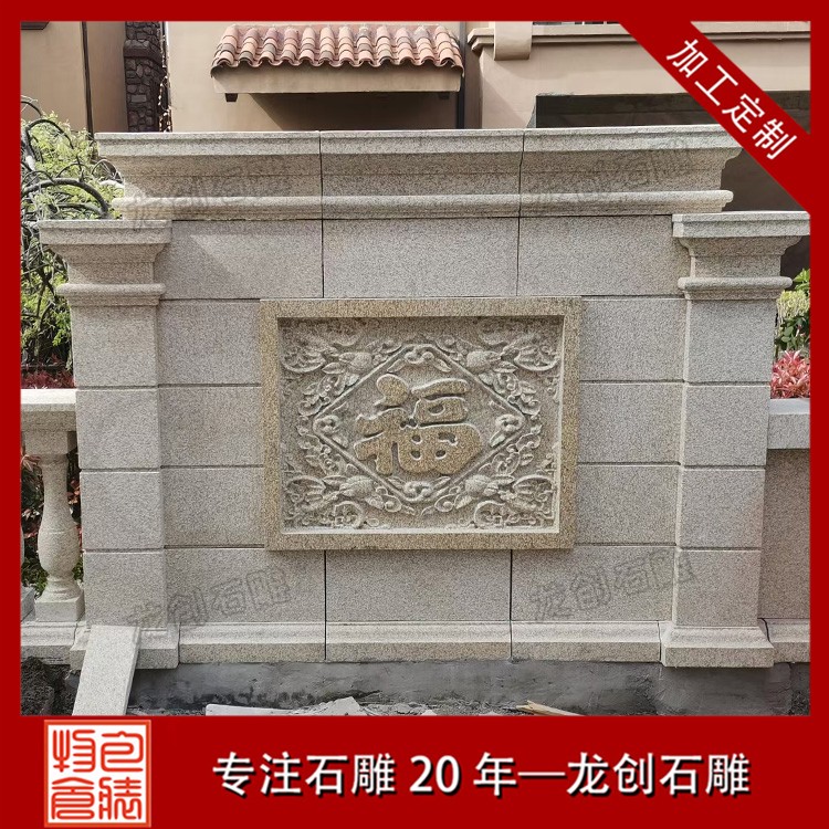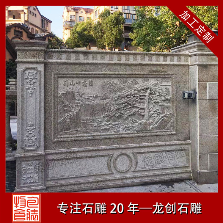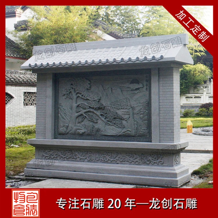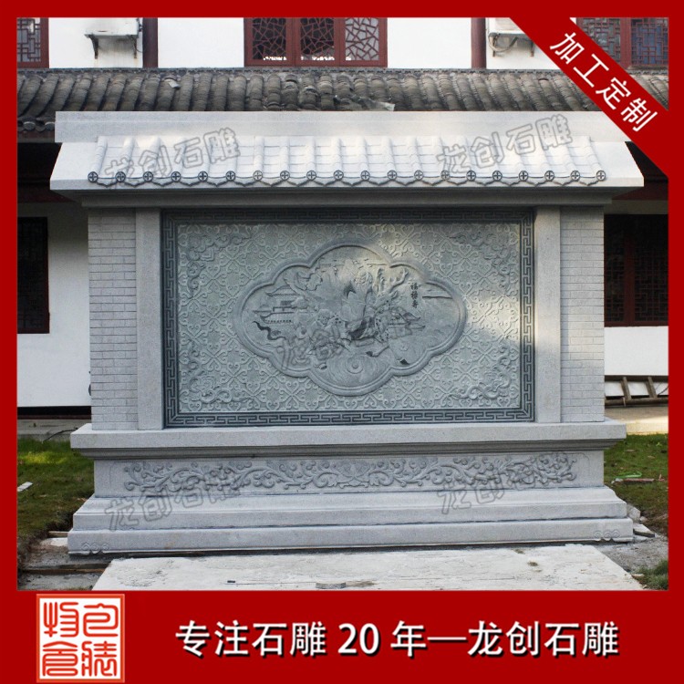 石材浮雕照壁就是用石材雕刻的一種墻面,也稱石雕影墻、石雕照墻,是古代寺廟、宮殿、官府衙門和深宅大院前的一種建筑,即門外正對大門以作屏障作用的墻壁。石雕照墻定制,選惠安龍創石雕
