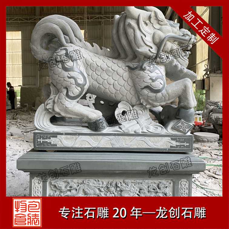 麒麟,集獅頭、鹿角、虎眼、麋身、龍鱗、牛尾于一身,融合了多種瑞獸的特征,盡顯祥瑞之相。它被視為仁獸,代表著吉祥、太平、長壽與聰慧。石雕麒麟線條流暢,身姿優雅,在文化場館或宗教圣地,麒麟石雕傳遞著神圣與美好的祝福,讓人們心生敬畏與向往。