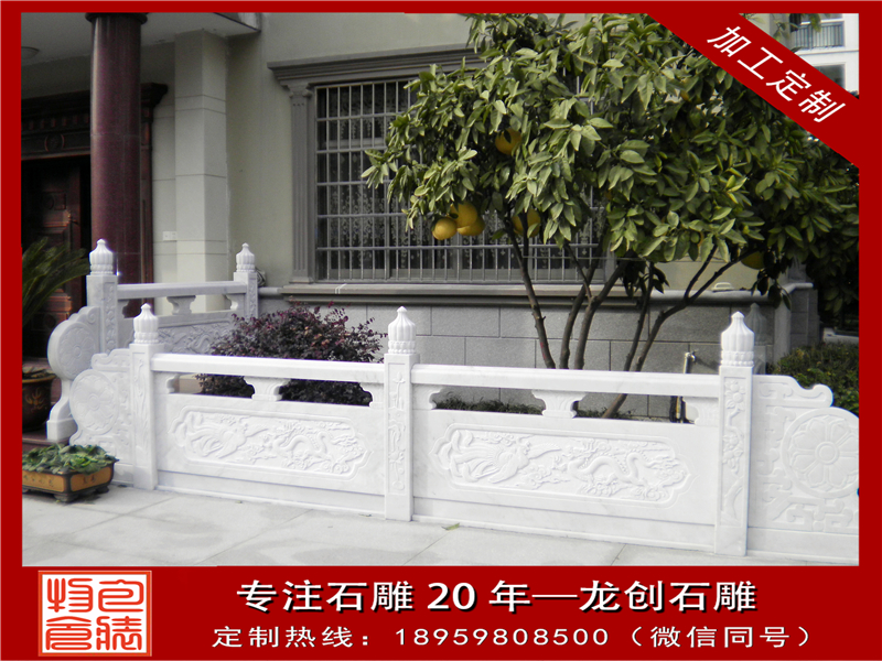 漢白玉欄桿價格根據欄板所透圖案的不同價格也不等,一般的規則圖形價格比較便宜,特殊造型和圖案的稍微貴上一點;浮雕根據所要求的深度和圖案的不同價格不等,雕刻的圖案越深,人工的成本就越高,花鳥的圖案一般相對便宜些,動物人物的相對來說貴一些??傊褪堑窨痰脑綇碗s,那么價格就越貴。