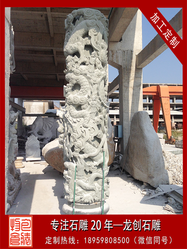惠安石雕龍柱的雕琢是行業內的龍頭,千年的石雕文化積聚及日以精深的雕琢技藝使得惠安石雕在國內外都很有名。石雕龍柱素有祥瑞、富貴、老實守信等意,是寺院、道觀、宗祠、公司、園林等常見之柱,立在公園或景區廣場路邊等,可以成為獨樹一幟的景觀來欣賞。石雕龍柱的價錢普通依據其材質的不同、外型的不同、尺寸大小的不同及工藝復雜水平的不同,價錢區間普通在20000元左右每根。