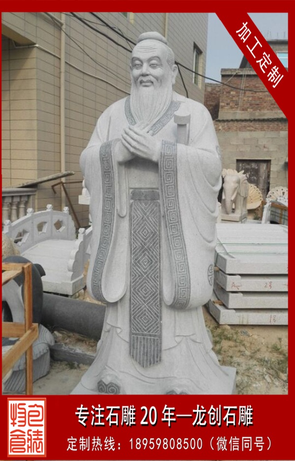 石雕孔子像是指用天青墨玉、霞玉、緬甸玉、漢白玉、墨玉、佘太玉、砂巖、大理石、花崗石、銀灰白石、雪花白等石材玉料雕刻的孔子像。石雕孔子就是孔子雕像,又名石雕孔子行教像,孔子標準雕像。