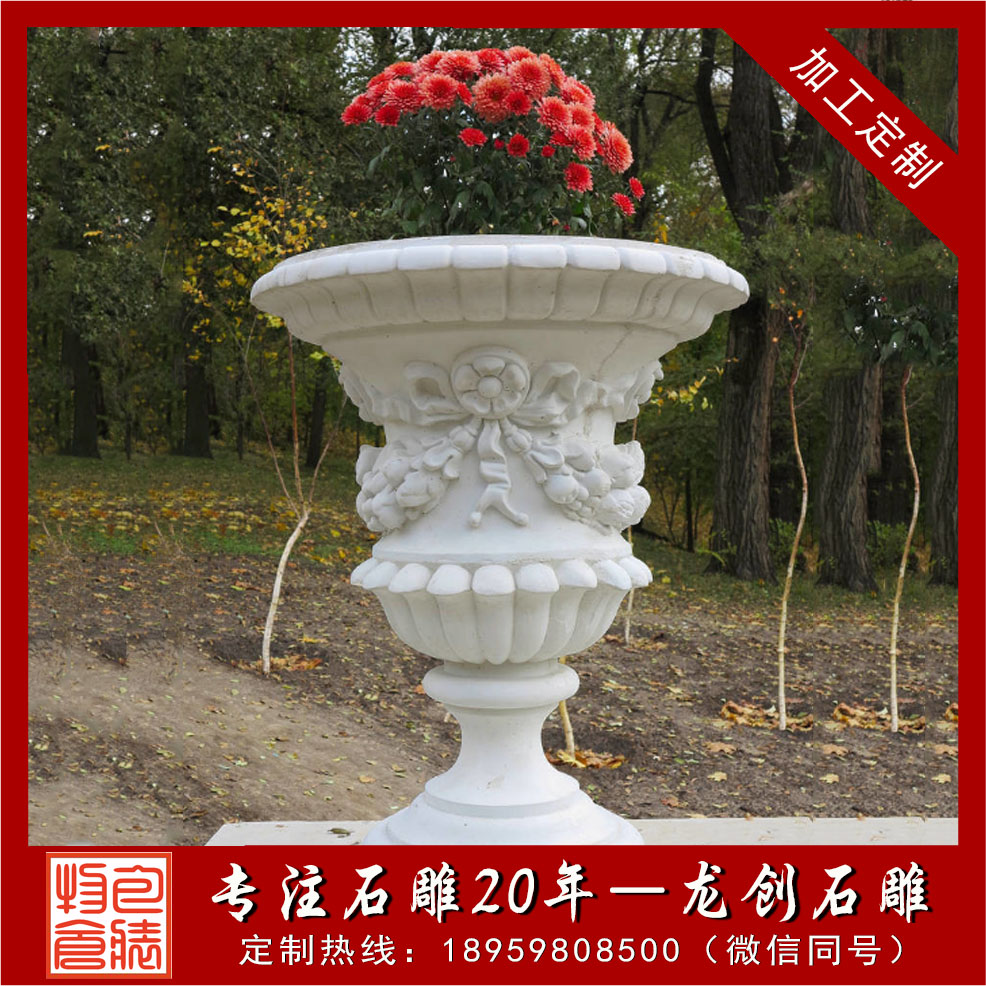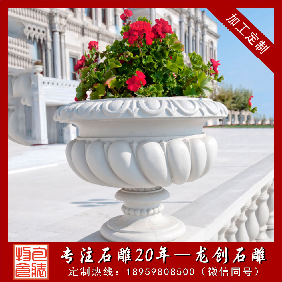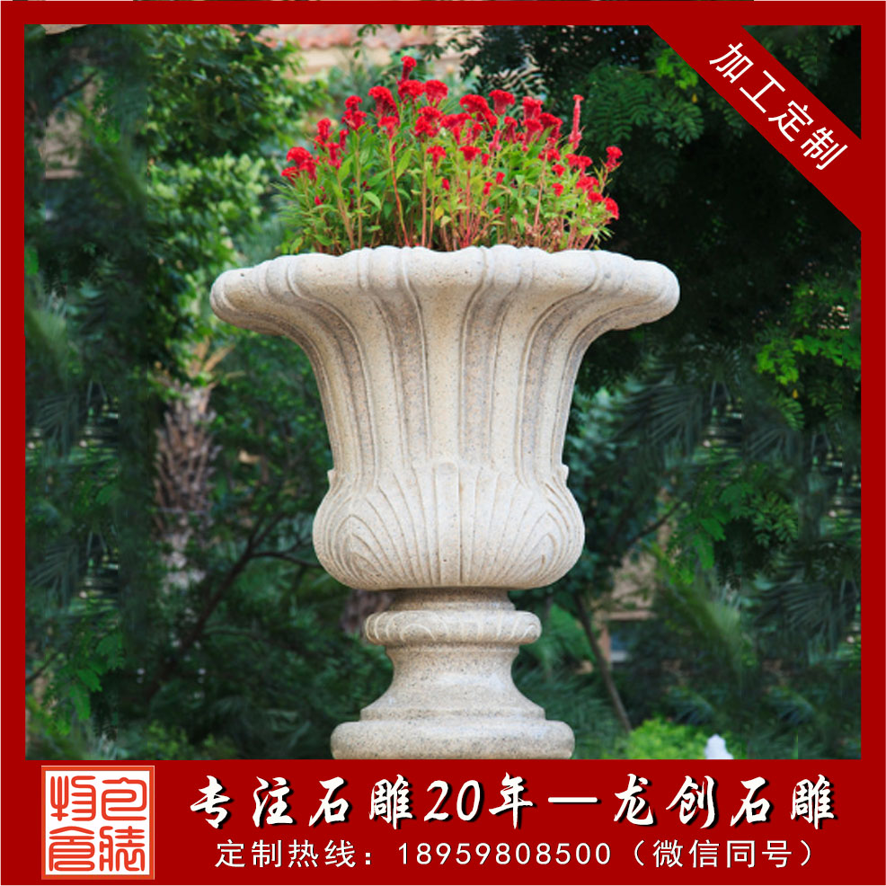 石雕花缽、石材花缽是通過石材雕刻制作而成的花盆雕塑作品,一般以砂巖、青石、花崗巖、大理石為材質,造型上大都以浮雕畫進行盆壁的裝飾修飾。石材花缽既有花盆的實用性,又有很好的裝飾性,且質地堅硬致密、強度高、抗風化、耐腐蝕、耐磨損、吸水性低,顏色美觀,格調高雅,保養方便簡單,使用壽命長。以下介紹幾款常見石材花缽種類