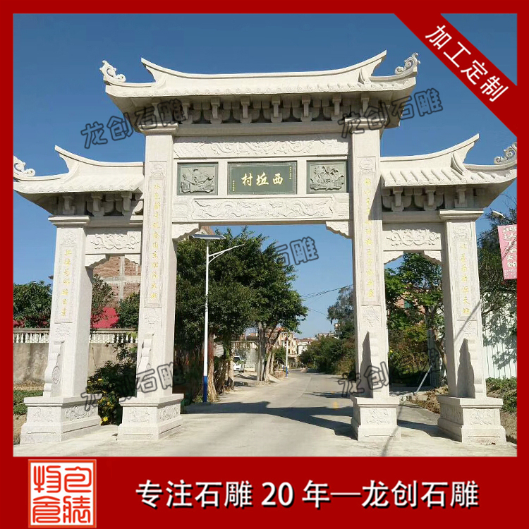 村頭石牌樓制作材質(zhì)有青石、花崗巖、大理石等,樣式有單門、三門、五門,三樓、五樓、七樓等,雕刻的圖案也是多種多樣,因此村頭石牌樓價格沒有一定的,預(yù)算多可選擇的樣式也就多,大理石牌樓價格,請致電我司咨詢,我們會給您一個專業(yè)的報價。