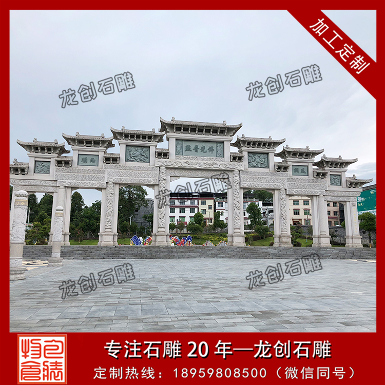 2、現(xiàn)代石雕牌坊設(shè)計(jì)要注意和實(shí)地環(huán)境的結(jié)合?,F(xiàn)代化的石雕牌坊建筑可以是在休閑區(qū)域,也可以是在商業(yè)廣場(chǎng),還可以在景區(qū)內(nèi)建造,常見(jiàn)的就是在仿古街的入口處修建石雕牌坊,既能夠體現(xiàn)古色韻味又能夠吸引游人的關(guān)注。如村莊牌坊的修建,就要和村莊的風(fēng)俗文化相結(jié)合,只有這樣才能和當(dāng)?shù)丨h(huán)境文化融為一體。無(wú)論是在哪里進(jìn)行建造石雕牌坊,一定好和當(dāng)?shù)氐沫h(huán)境進(jìn)行有機(jī)的結(jié)合,這樣才能讓建筑和環(huán)境融為一體,才能讓建筑為周圍的景色帶來(lái)亮點(diǎn)。
